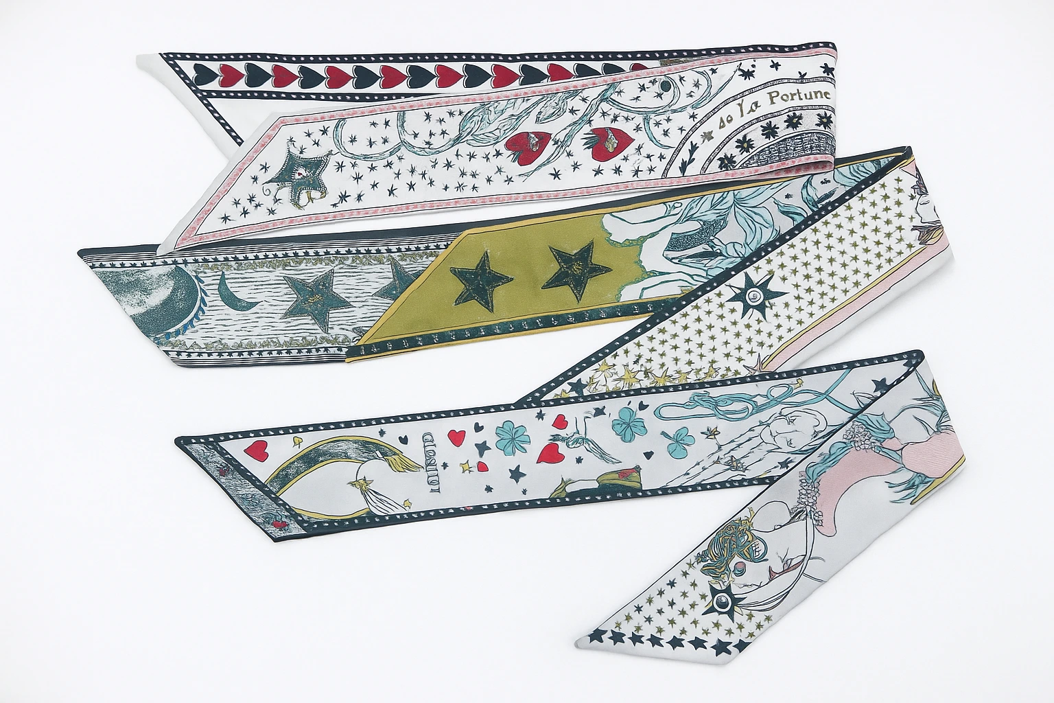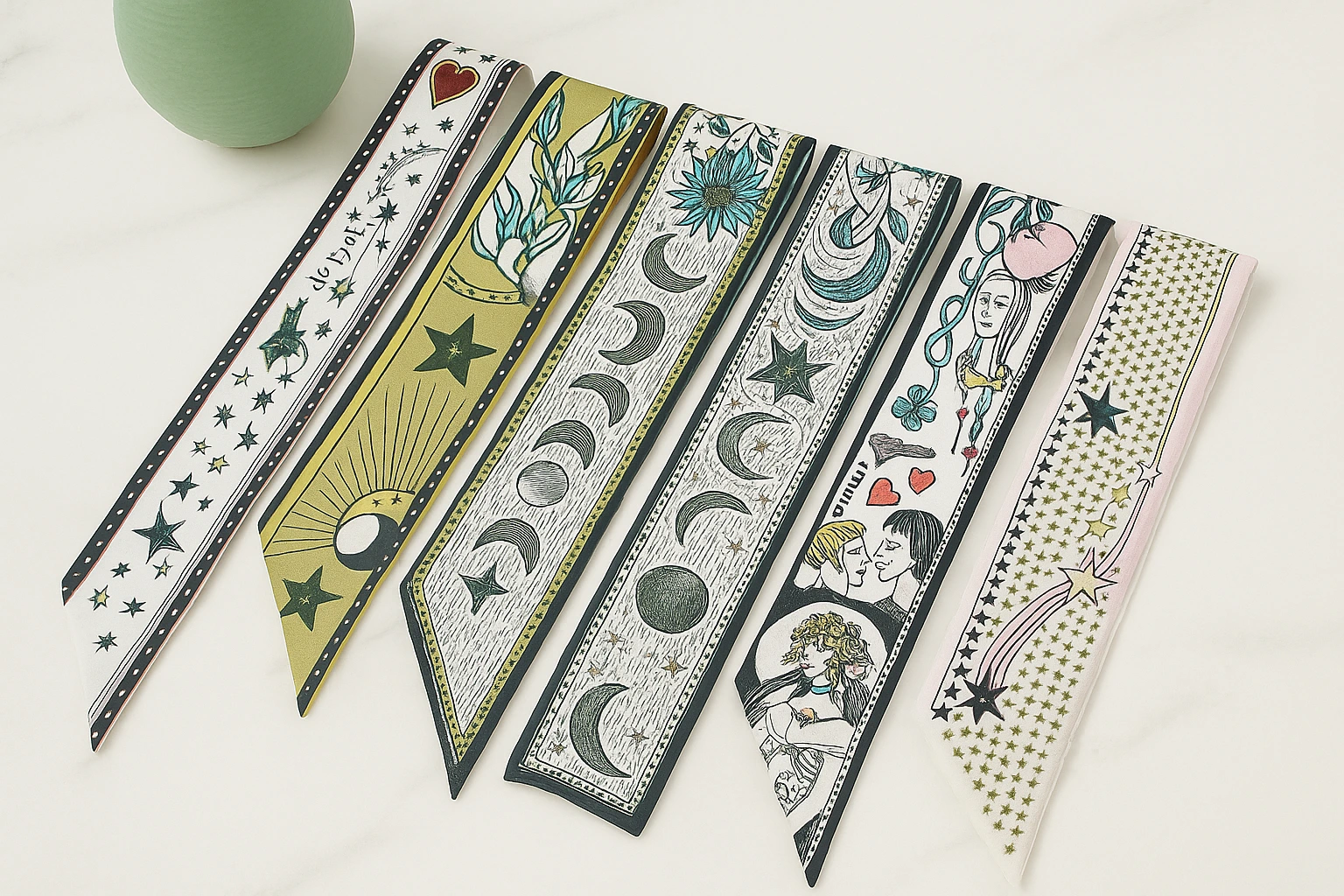 Celestial Charms: Each scarf features a charming mixture of bees, hearts, stars, flowers, and celestial bodies.